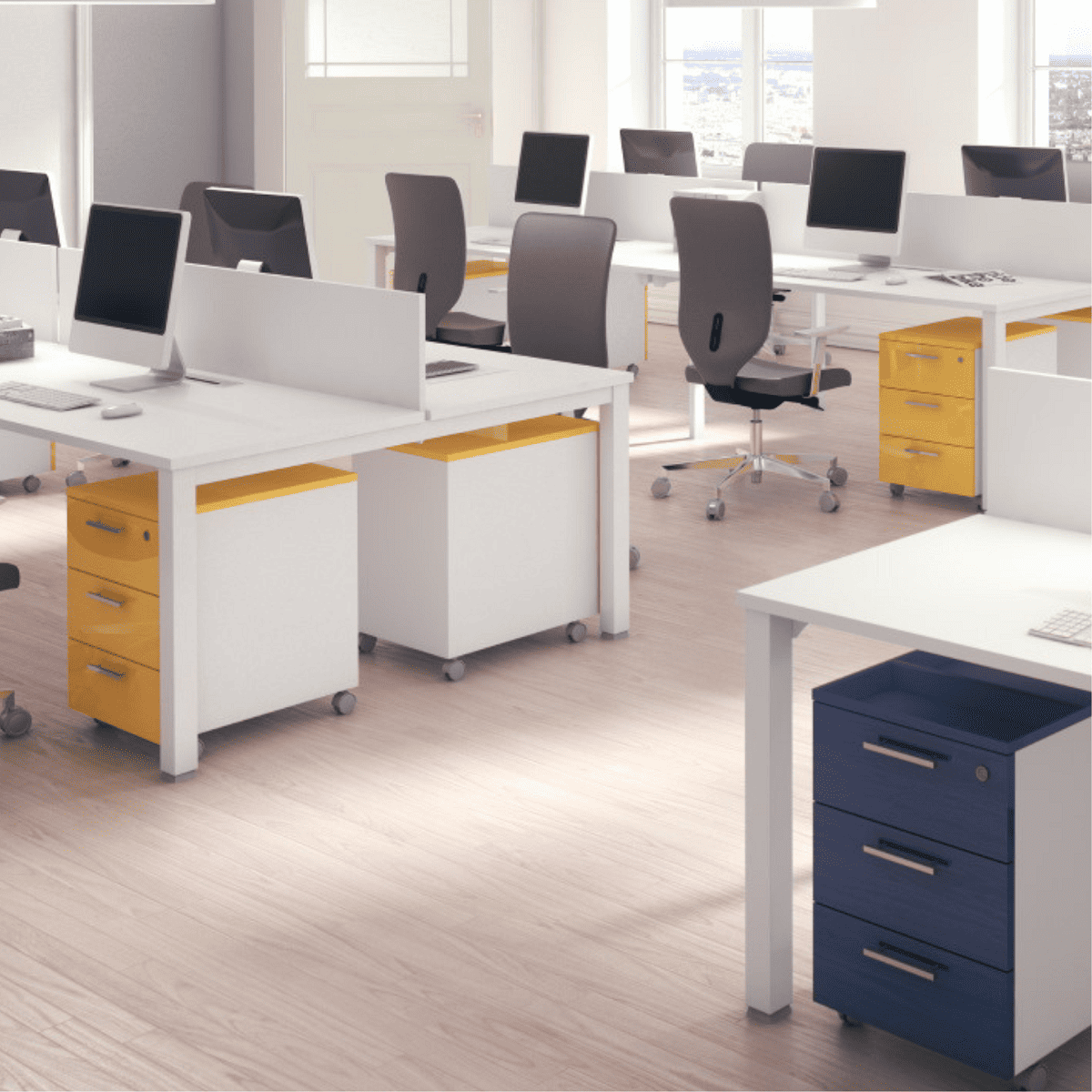 Las cajoneras de melamina son un elemento esencial para oficinas, despachos y espacios de trabajo en casa. Su diseño práctico y moderno permite almacenar documentos, material de oficina y objetos personales de manera eficiente. Además, su estructura resistente y variedad de acabados la convierten en una opción versátil que se adapta a cualquier ambiente.