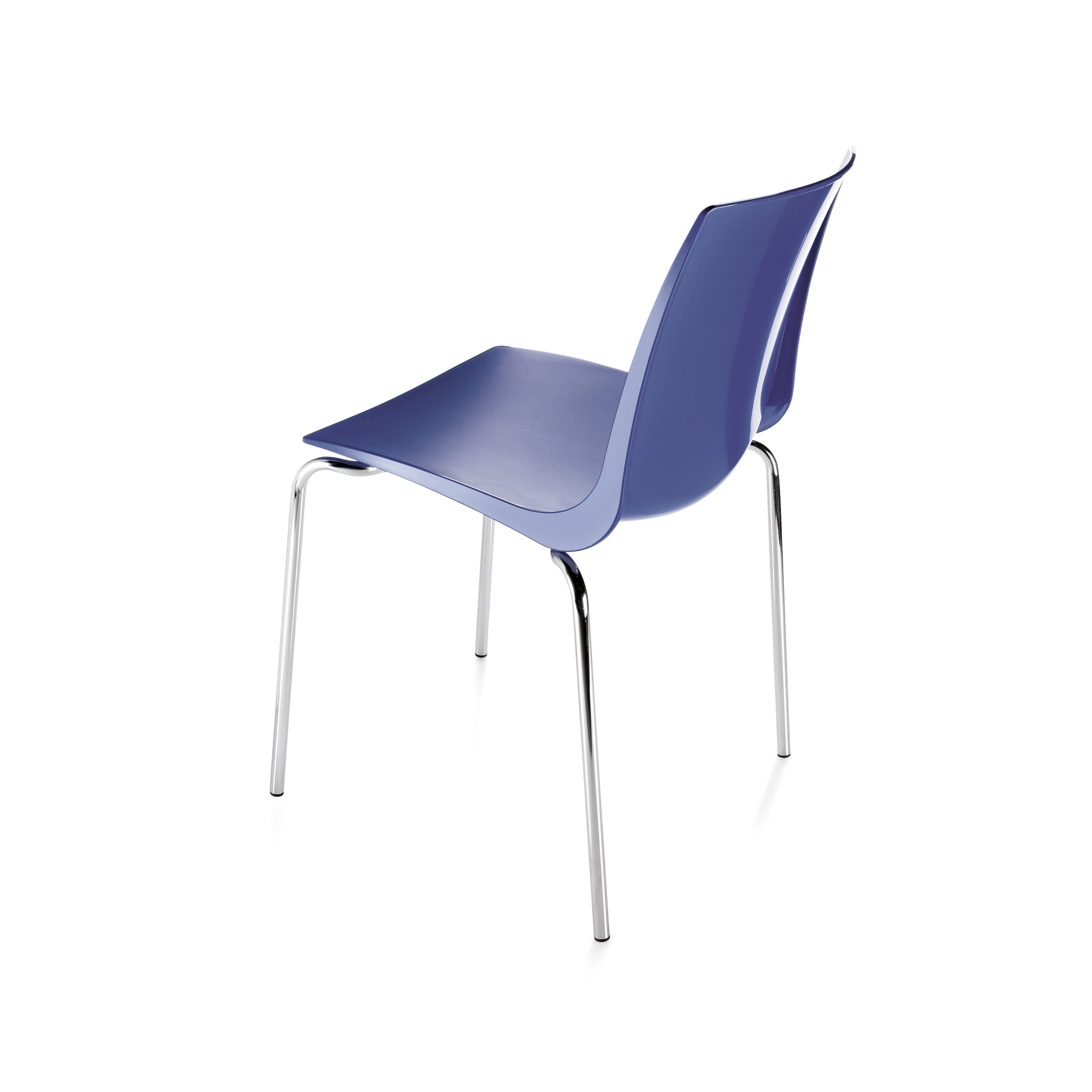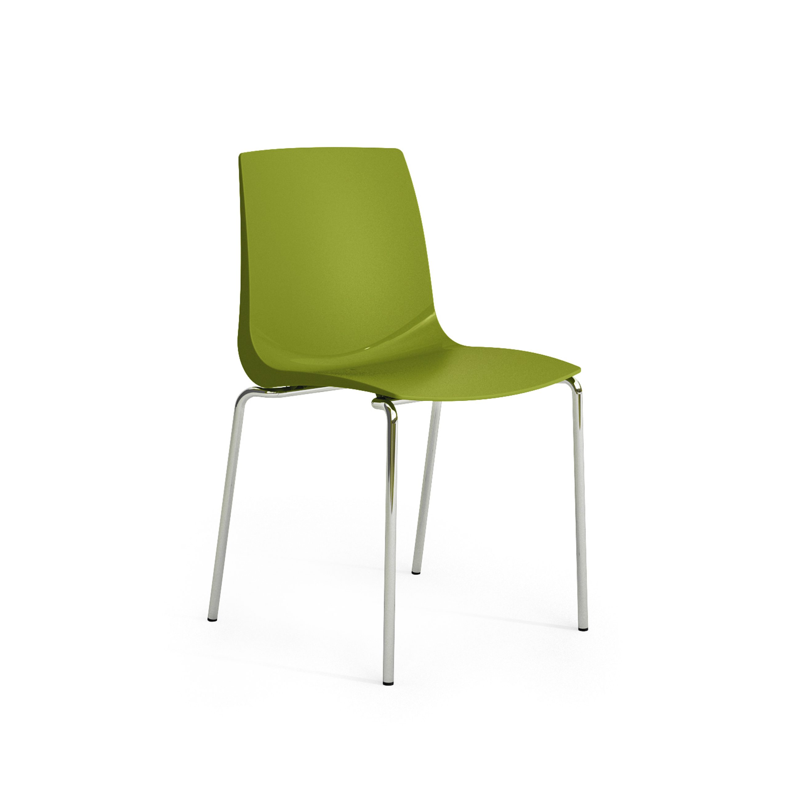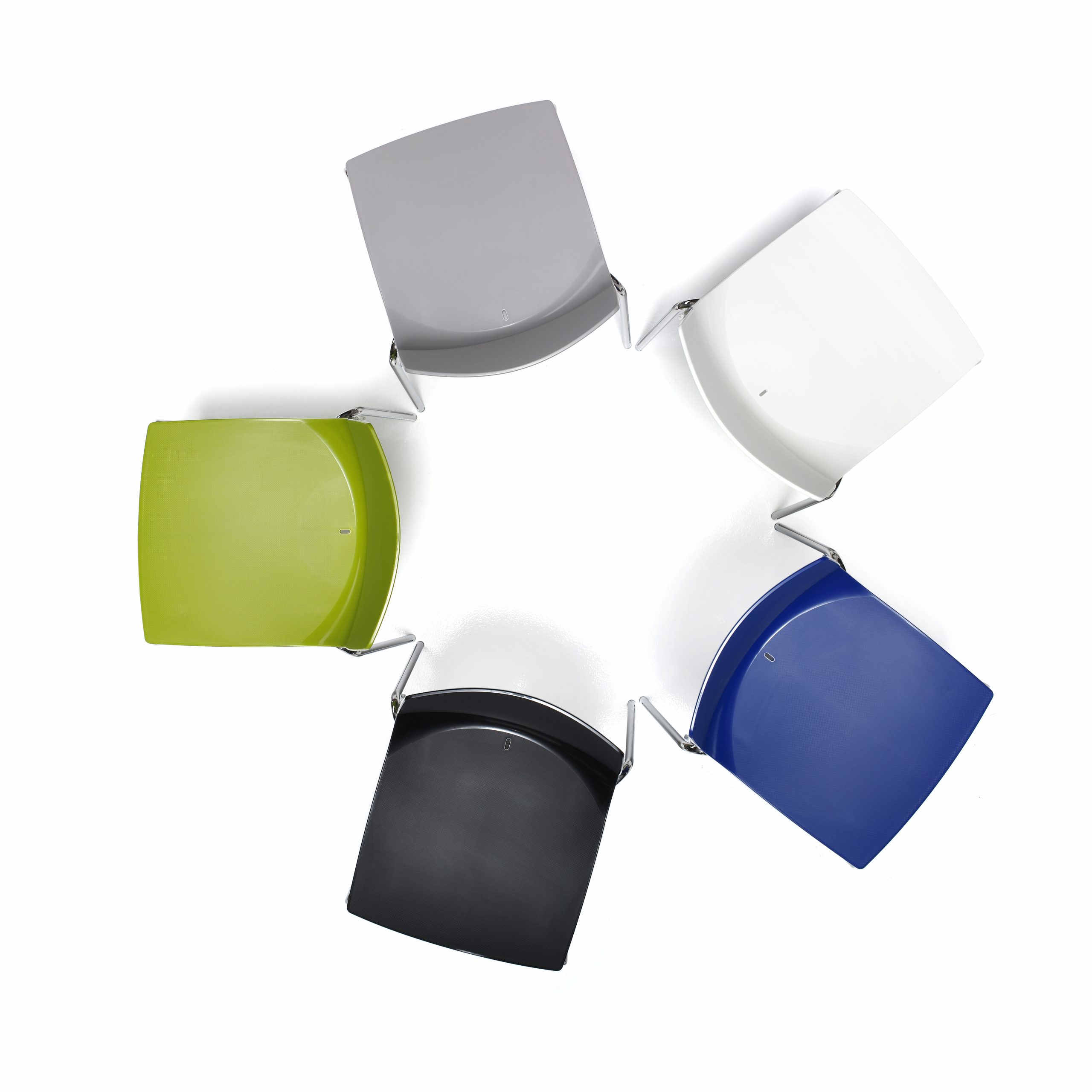 Colores sencillos, discretos y combinables aparecen en ARI, una silla monocarcasa de curvas envolventes fácilmente apilable y transportable.