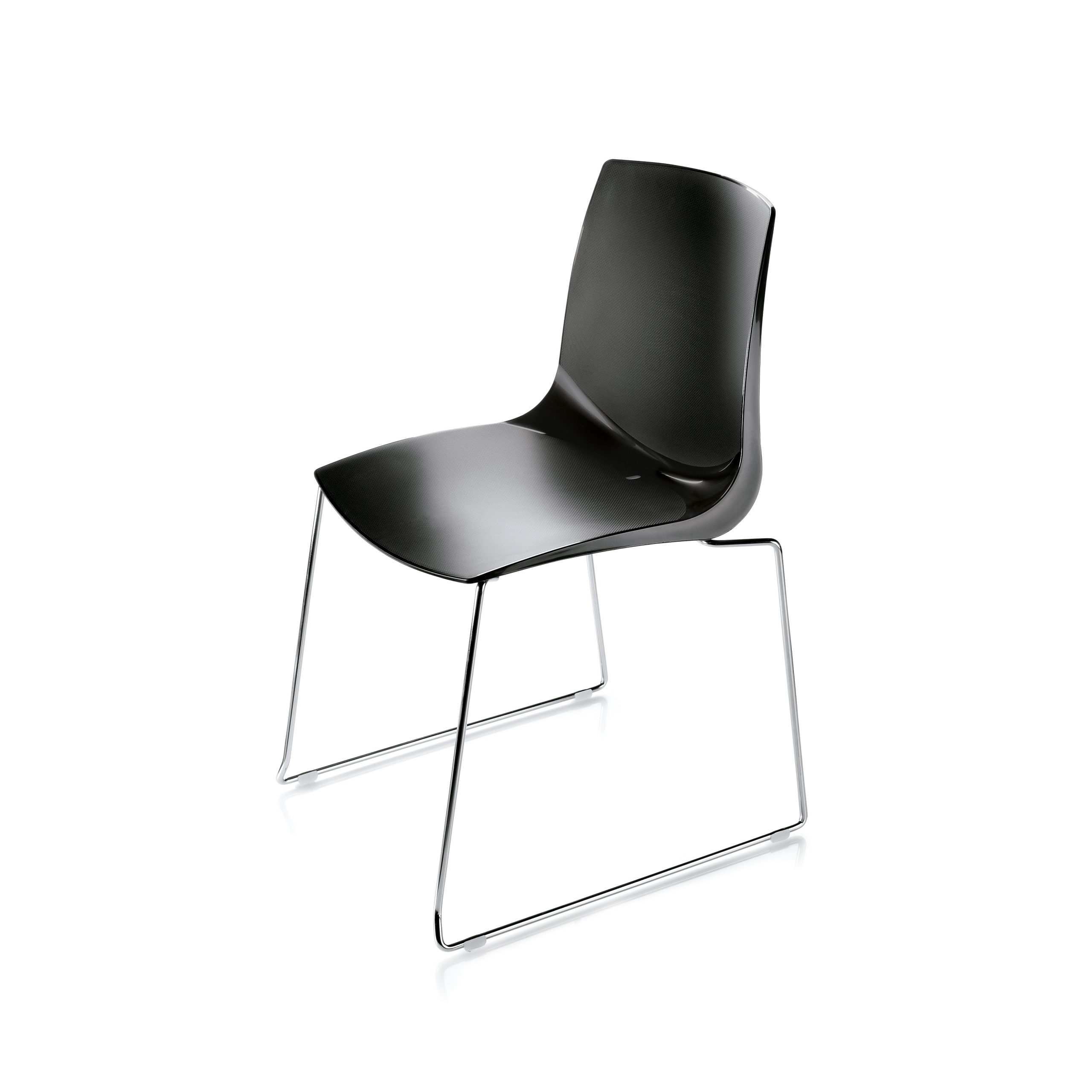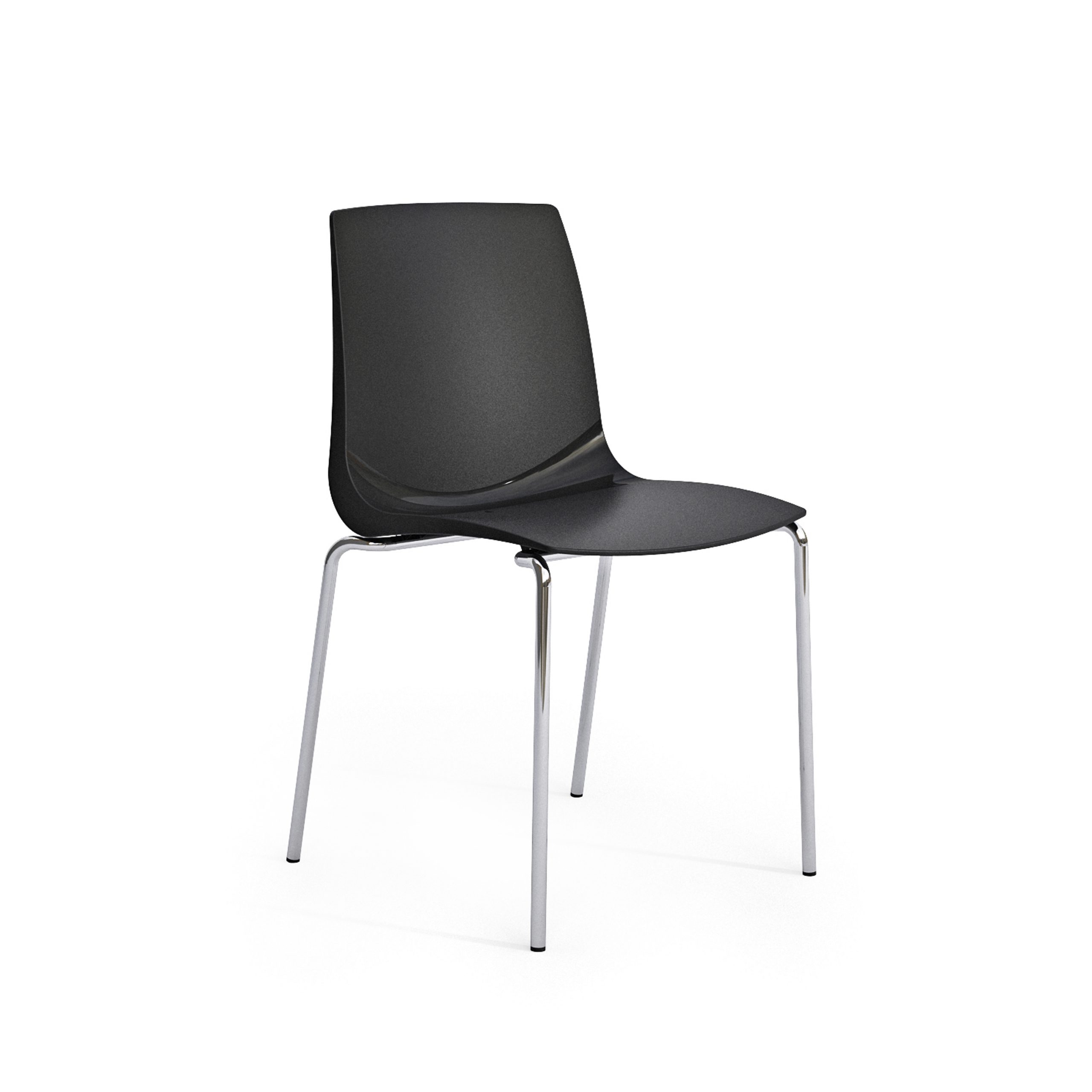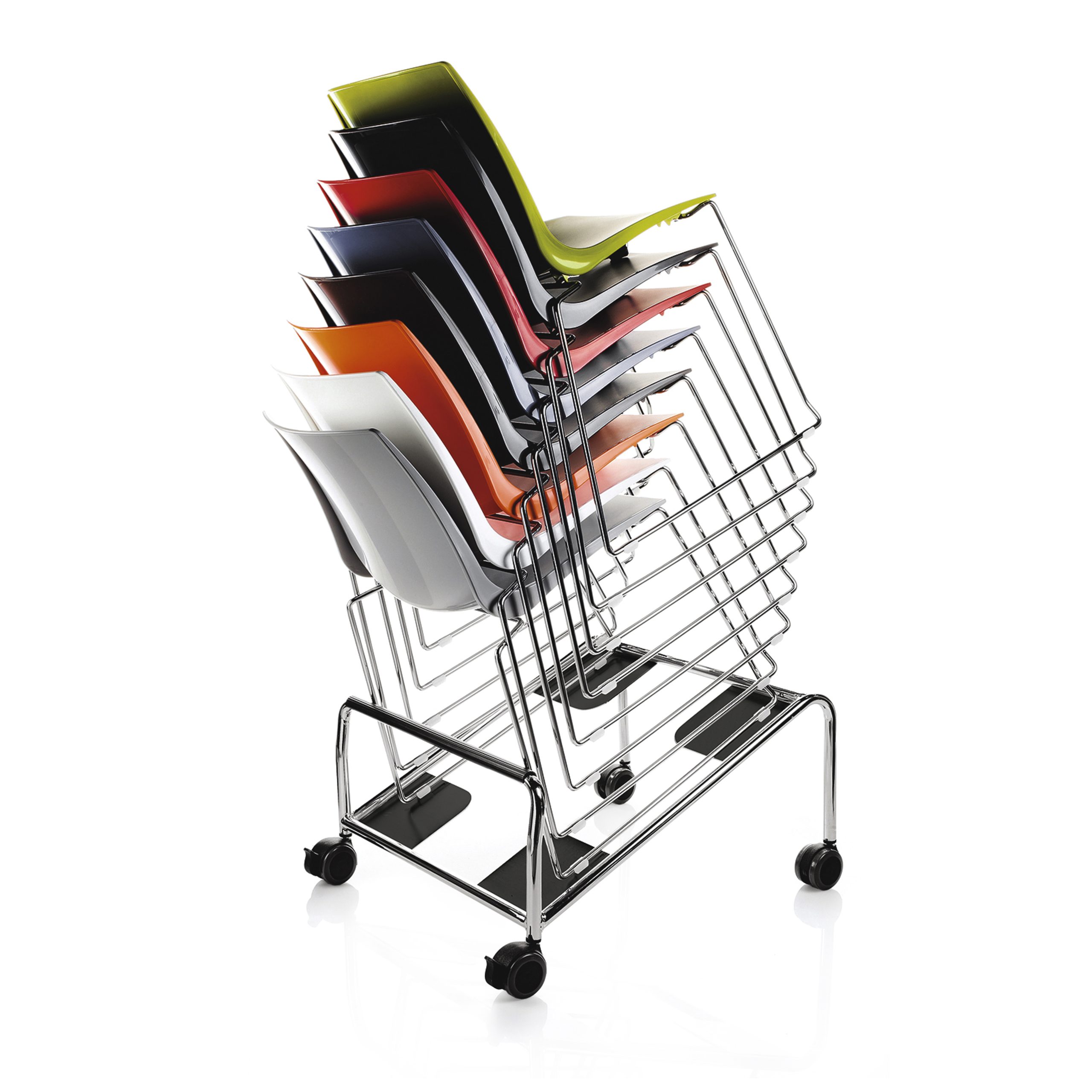Colores sencillos, discretos y combinables aparecen en ARI, una silla monocarcasa de curvas envolventes fácilmente apilable y transportable.