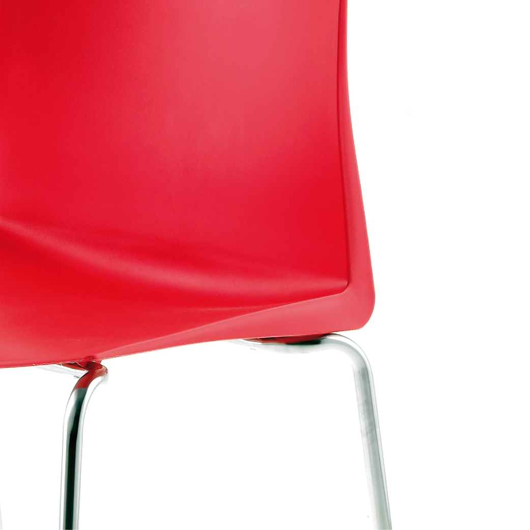 Estructura 4 patas en tubo de acero cromado. Apilable.