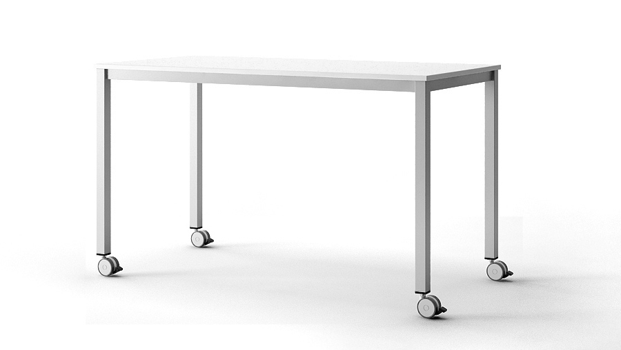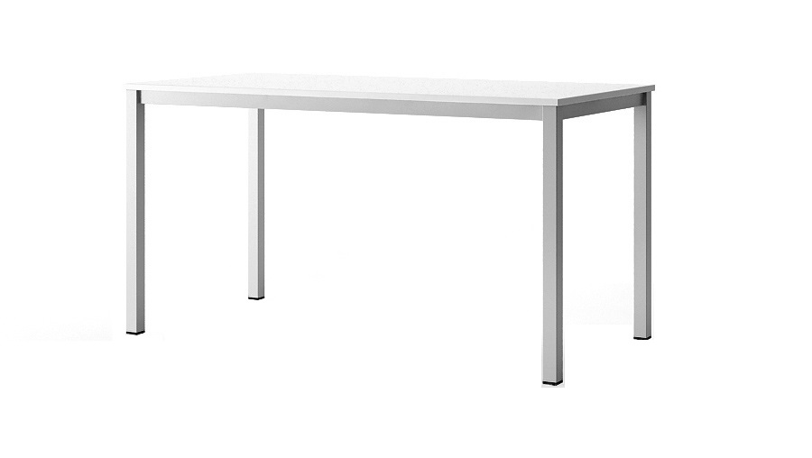Mesa recta de 4 patas con estructura perimetral de acero con 4 patas fabricadas en tubo de acero cuadrado.