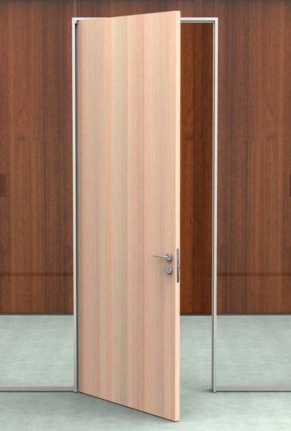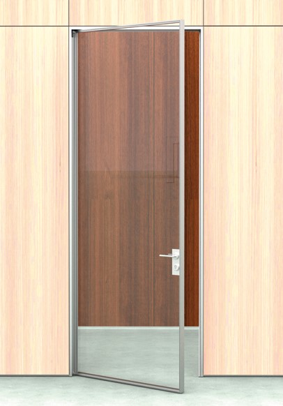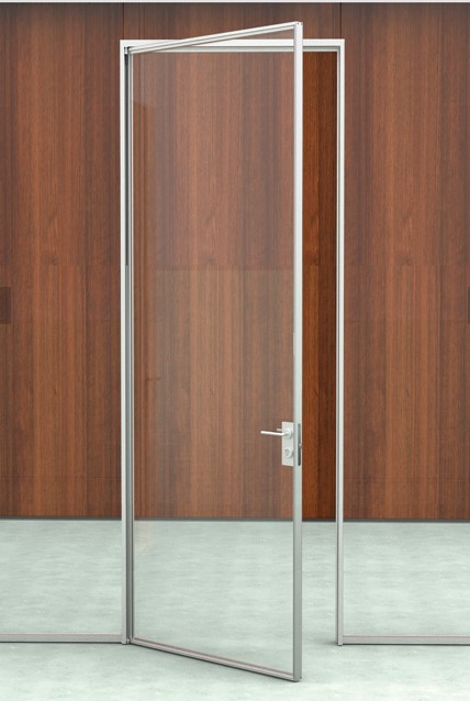 Sistema de puertas batientes y correderas simples o dobles enmarcadas en aluminio, compatible con toda la gama de divisorias FLATbyArtis.