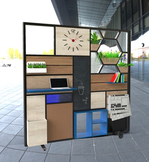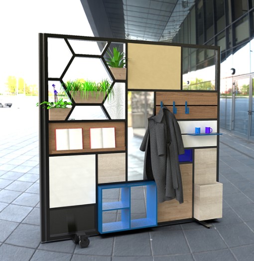 Hemos reunido los conceptos de coworking, teletrabajo y áreas multifuncionales configurables para diseñar una divisoria autoportante, independiente e interactiva llamada Flat Move.