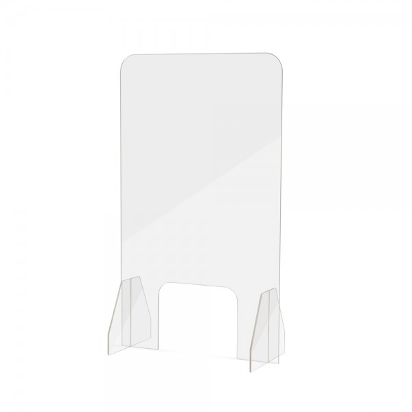 Separa físicamente a las personas entre sí y gracias a su apertura inferior permite pasar los productos comprados, así como el pago de los mismos.