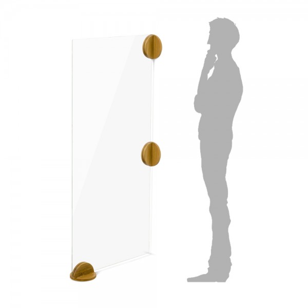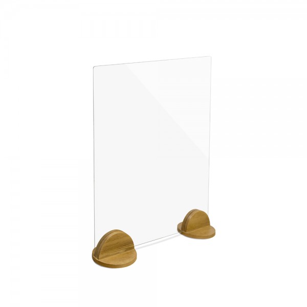 Mamparas modulares de cristal templado de 4 mm de espesor, con pies ajustables realizados en madera natural, que permite una adaptación según la necesidad deseada, pudiendo elegir entre 2 modelos de sobremesa, con o sin ventana, donde podremos colocar el cristal en horizontal o vertical.
