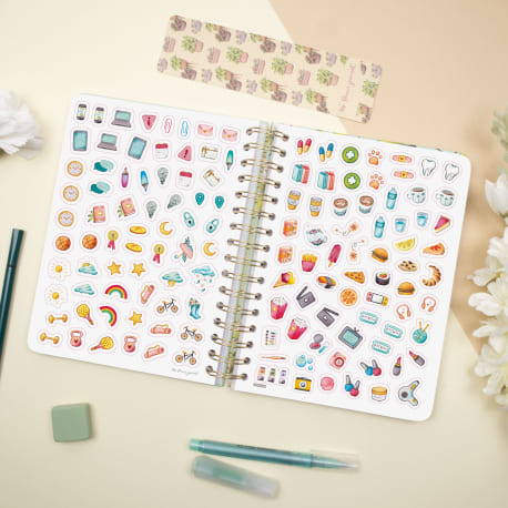 Otro de sus puntos fuertes es su compromiso con la sostenibilidad: está fabricada con papel FSC®, lo que garantiza una producción respetuosa con el medio ambiente. Además, incorpora marcapáginas, adhesivos temáticos y esquinas microperforadas, elementos que facilitan tu día a día y elevan tu experiencia de uso.