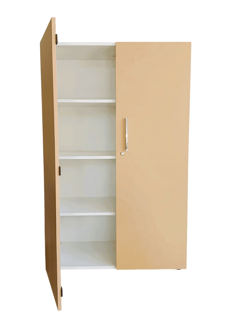 Además, las puertas cuentan con cerradura de seguridad y un sistema de apertura cómodo y robusto, proporcionando un acceso sencillo al interior del armario y protegiendo documentos u objetos importantes.
