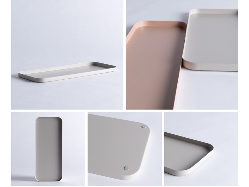 Es de acero y una fiel representación del estilo industrial. Gracias a su material es una bandeja resistente y duradera.
