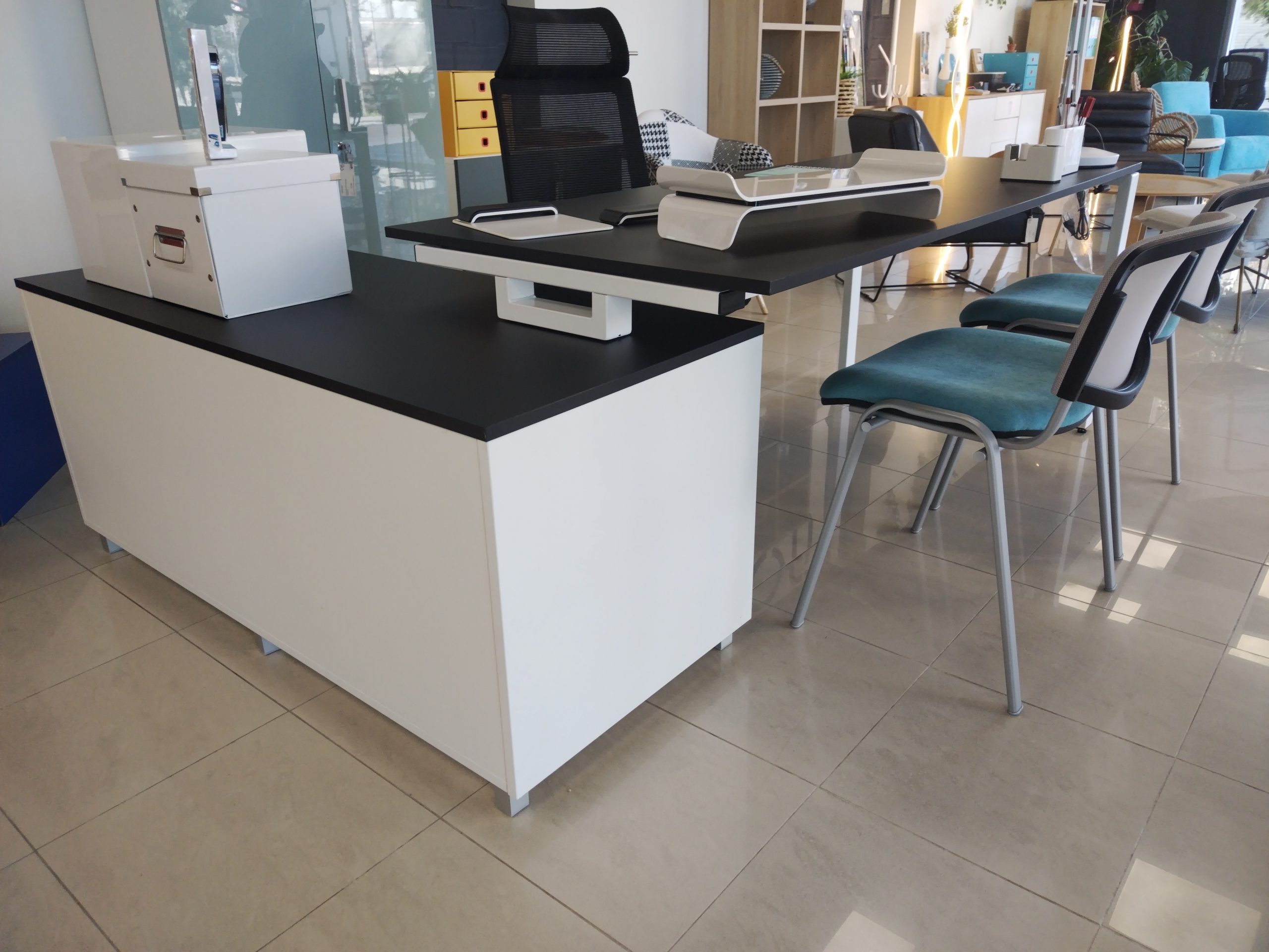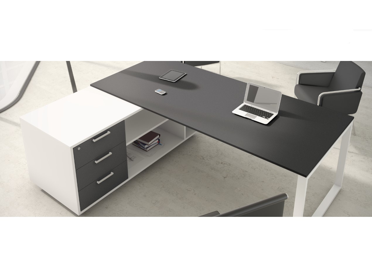 Mesa IPOP 180x80x74cm de estructura blanca con encimera color Negra Zenit super Mate