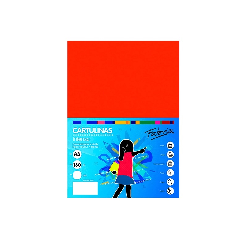 Paquete de 100 hojas cartulina tamaño A3 color rojo de la marca Fabrisa.