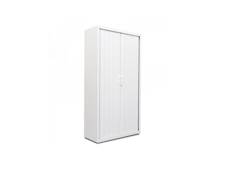Armario metálico para oficina de la marca Gapsa color blanco con puertas persiana en vertical. Incluye 5 estantes.