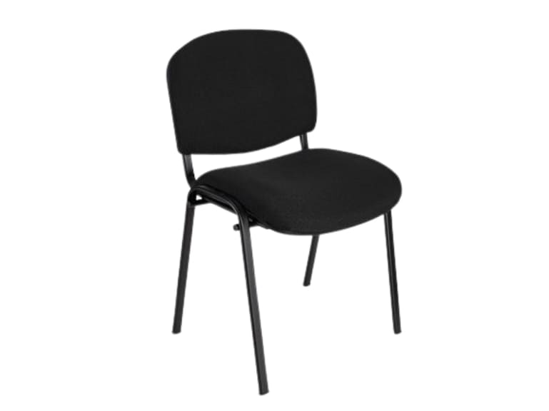 Silla confidente ergonómica, apilable, multiusos y estructura en color negro.