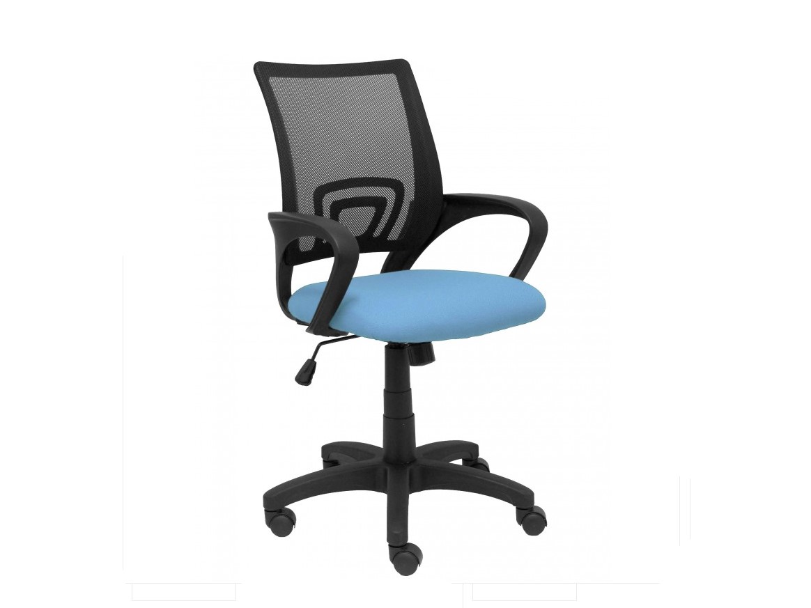 Respaldo de malla en color negro y asiento tapizado en tejido Bali color azul cielo.